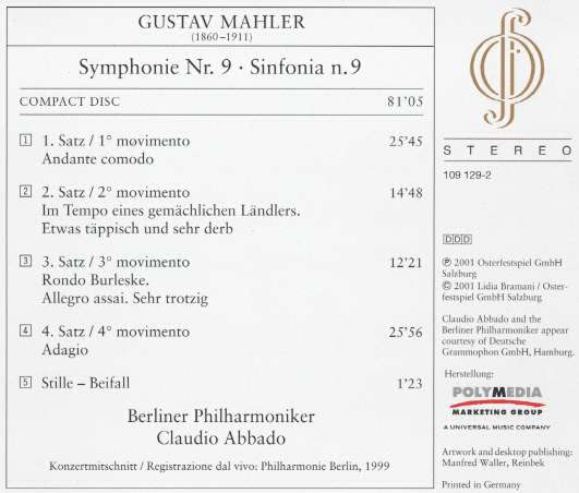 2001年イースター音楽祭で配布されたマーラー交響曲第9番のCD (1999年 ベルリンでのライヴ録音)