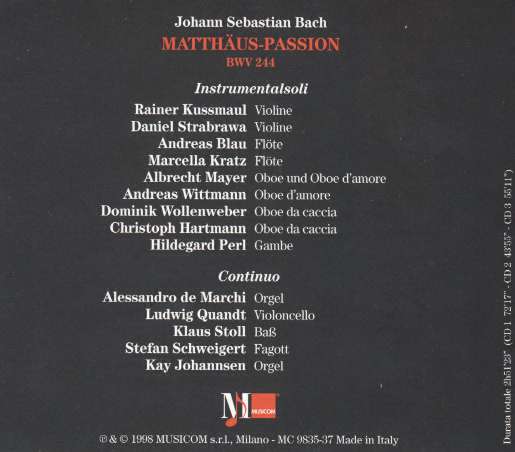 1998年イースター音楽祭で配布されたバッハ《マタイ受難曲》のCD (1997年のライヴ録音)