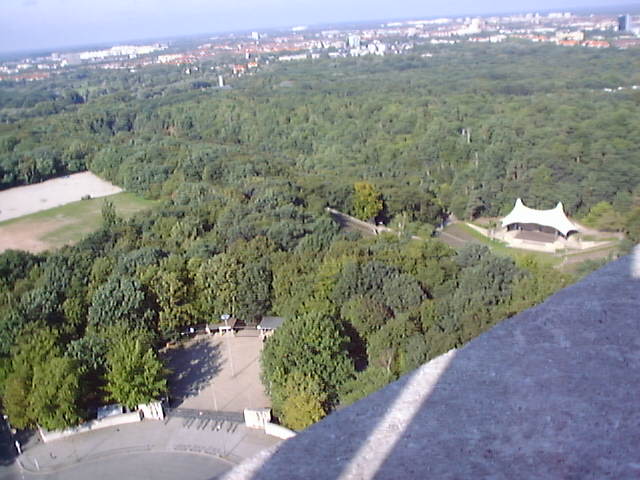 普段は中に入ることはできないが、 すぐ近くの塔に登ると(有料)、高いところから会場の様子を見ることができる。